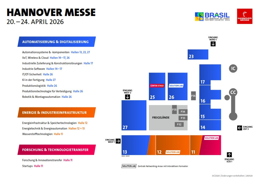 25. Februar 2026 | von Barbara DörmerRund 3500 Aussteller präsentieren auf der Hannover Messe vom 20. bis 24. April ihre Lösungen für die Produktion und Energieversorgung. KI zieht sich wie ein roter Faden durch die Veranstaltung. Als Partnerland ist Brasilien an Bord.