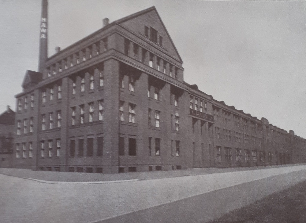 Historisches HAWA Gebäude in schwarz-weiß Ansicht